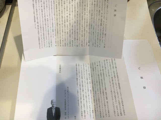 同梱物も特徴ありました。社長さんが前面に出て、自身の経緯や商品の想いについて記載されていました。